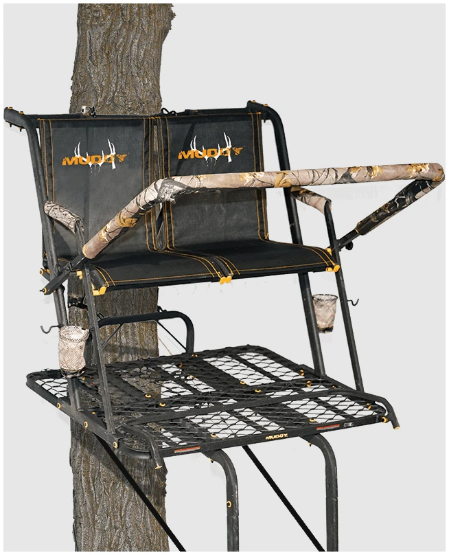 With a Flex-Tek seat and backrest, padded armrests, interchangeable cup holders, and more, with the Nexus XTL, there’s enough of everything to go around. Spacious 20’ H x 42”W x 34”D platform. Cross Grip Safety System keeps the stand secure while supporting up to 500 pounds.