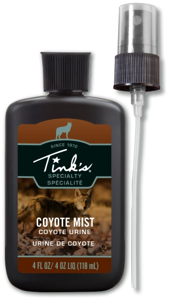 Stop predators in their tracks with Tink’s® Coyote Mist! This 100% pure coyote urine comes with a convenient spray top for dispensing lure easily. Use all season to get those “call shy” coyotes to come into range and those fast movers to check up, giving you increased shot opportunities.