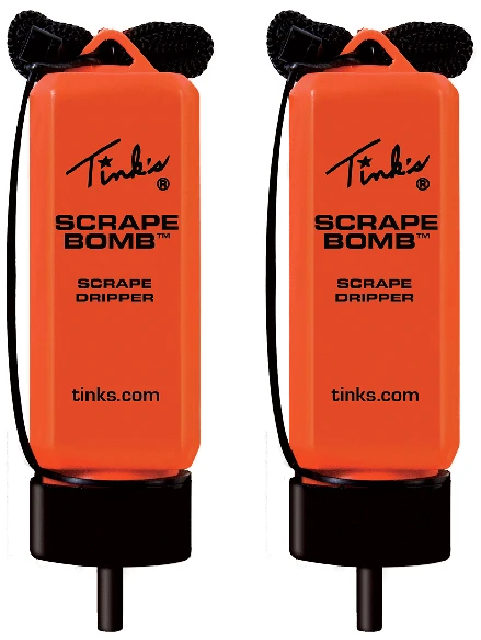 Combo pack of two Tink’s® Scrape Bomb® Drippers. Scrape Bomb® works with changes in temperature and barometric pressure, causing it to drip during daylight hours. Use over mock or natural scrapes to encourage repeat visits. Earth brown color allows dripper to blend into the surroundings.