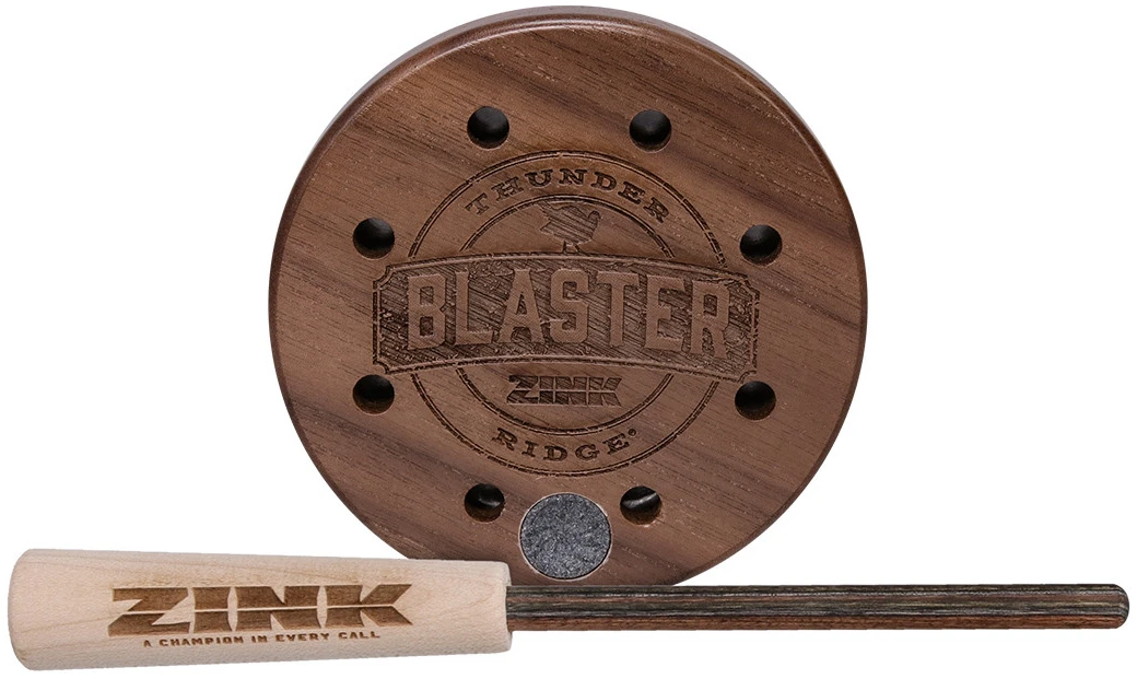 Constructed of a beautiful walnut pot topped with high-quality bead-blasted aluminum and paired with a maple-topped Dymalux striker, the Thunder Ridge Blaster™ Pot Call creates the purest all- natural turkey sounds. Thanks to its bead-blasted aluminum surface, this call delivers big—producing a variety of high-pitched sounds without skipping. It even comes with a built-in striker conditioning stone for added convenience.